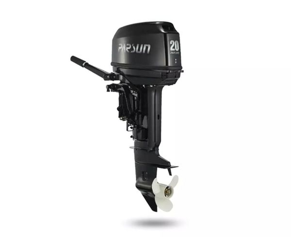 Это двухтактный, двухцилиндровый лодочный мотор мощностью 20 лошадиных сил. Он оснащен ручным запуском, румпельным управлением и короткой ногой (S). Производится в Китае, что, собственно, и обуславливает его привлекательную цену.