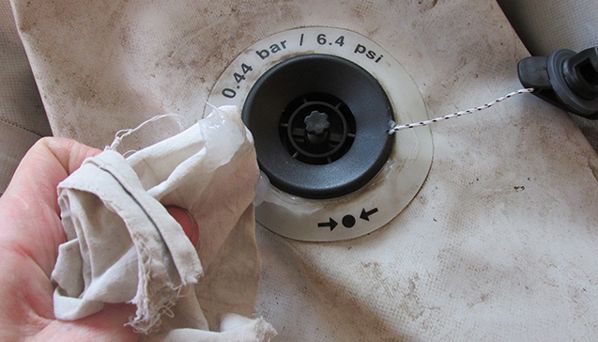 Используя специальный ключ, аккуратно открутите старый клапан. Делайте это против часовой стрелки. Если клапан прикипел, не прилагайте чрезмерных усилий, чтобы не повредить ткань лодки. Возможно, потребуется немного прогреть место вокруг клапана феном (на низкой температуре).