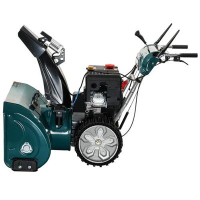 Эта модель снегоуборщика показывает высокую эффективность при уборке плотного и свежего снега. Она также оборудована специальными рычагами на панели управления для регулировки высоты и направления выброса снега. Основные преимущества данной модели: