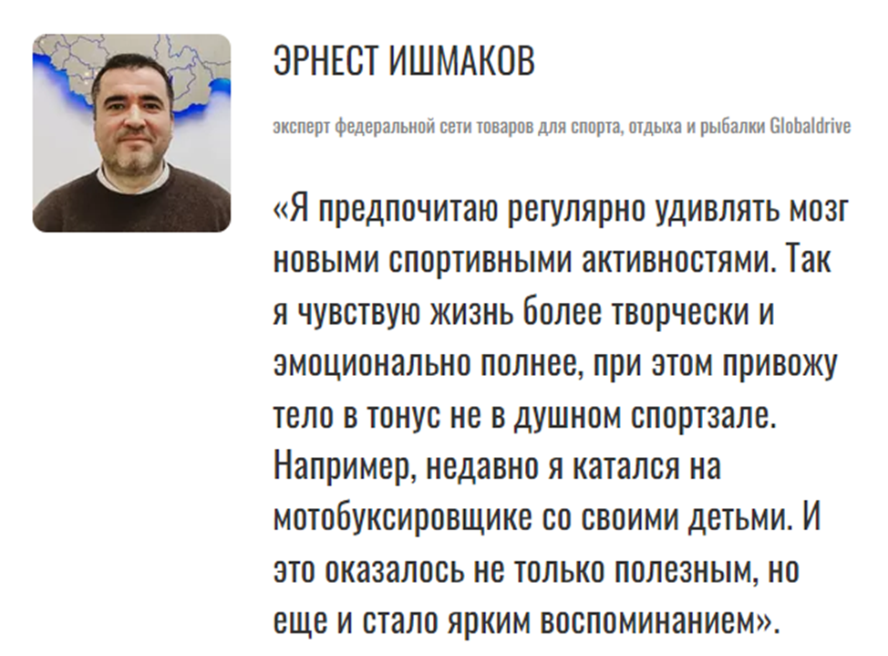 «Это экзотическое развлечение с каждым годом приобретает все большую популярность, — делится Эрнест Ишмаков. — Интерес к мотобуксировщикам растет — райдить на них оказалось также увлекательно, как, например, на сноуборде. Адреналин, скорость, спорт и снежные охапки хорошего настроения».